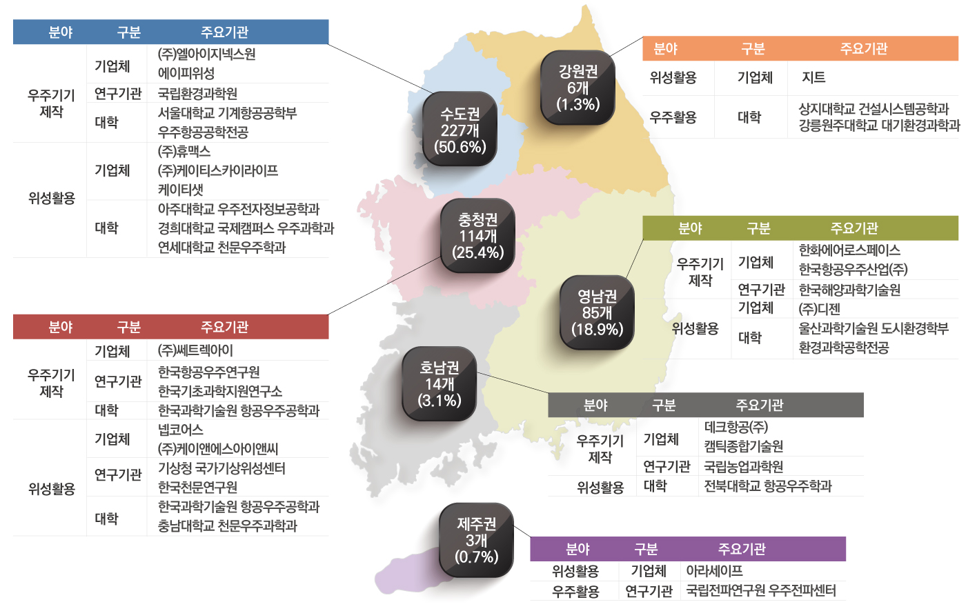 산업체 : 전체 우주산업체 절반이상 (58%) 이 수도권에 분포
